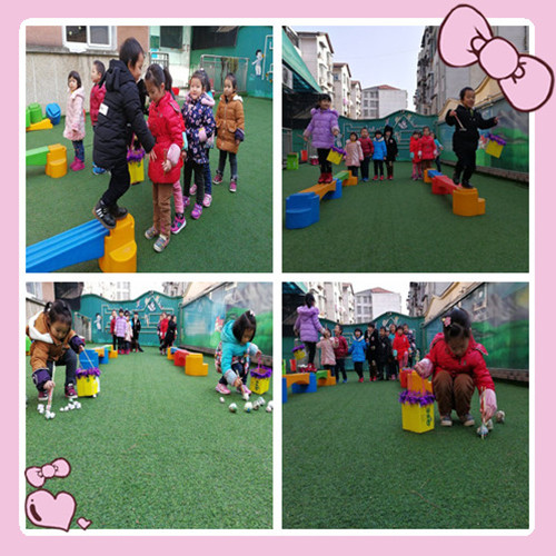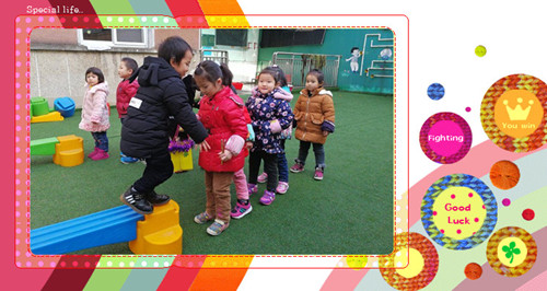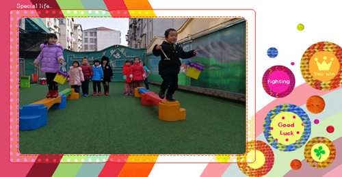 目标:通过此活动可以锻炼幼儿的平衡能力、走、跑、跳身体协调能力。