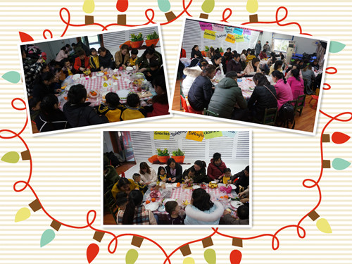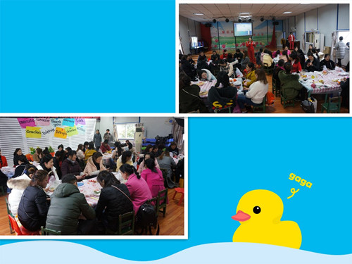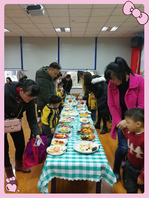 讲解完,我们的家长和孩子们都坐在一起,准备动手制作拼盘喽!